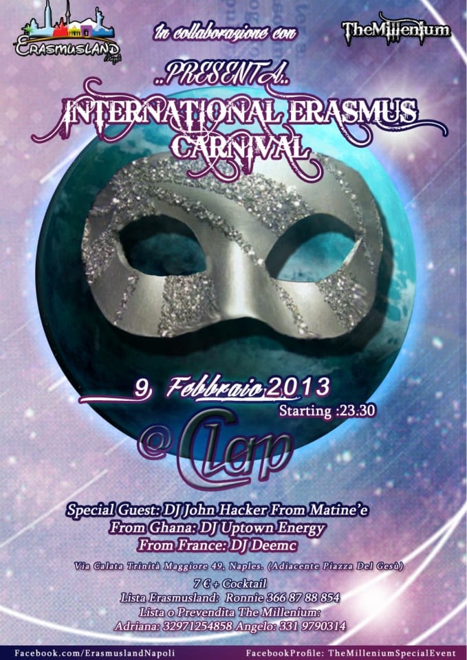 Il tema della serata sarà ”L’ internazionalità”dunque, ognuno potrà vestirsi come vuole, ma dovrà portare con se un simbolo che rappresenti la propria nazione o le proprie origini!